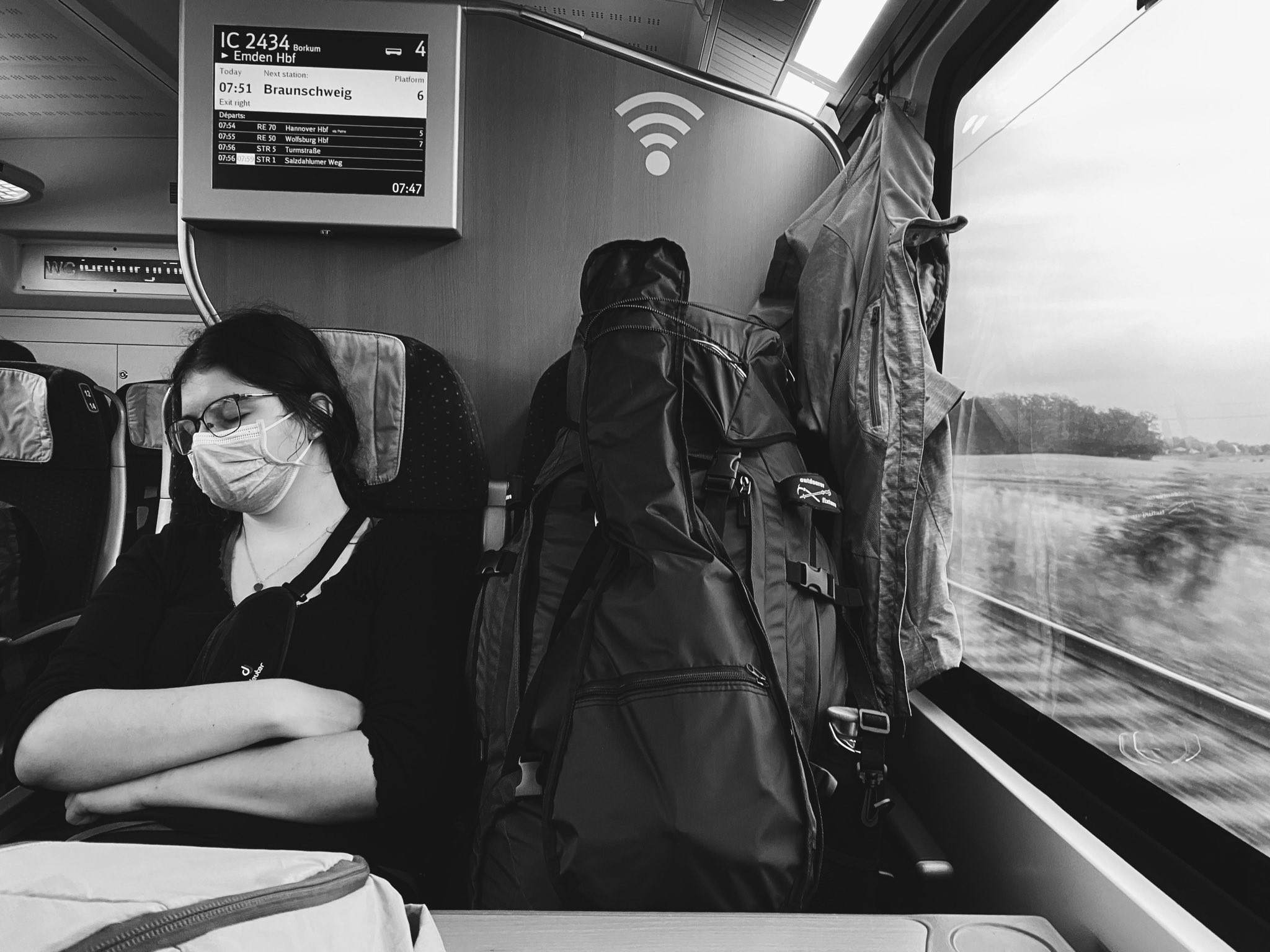 Mittwoch, 15.09.2021, 10.05: Wir steigen in Dresden in den Zug in Richtung Leipziger Hauptbahnhof. Unsere Rucksäcke sind schwer… sehr schwer… das stellen wir schon in den ersten fünf Minuten unserer Reise fest. Zum Glück können wir sie im Zug absetzen.