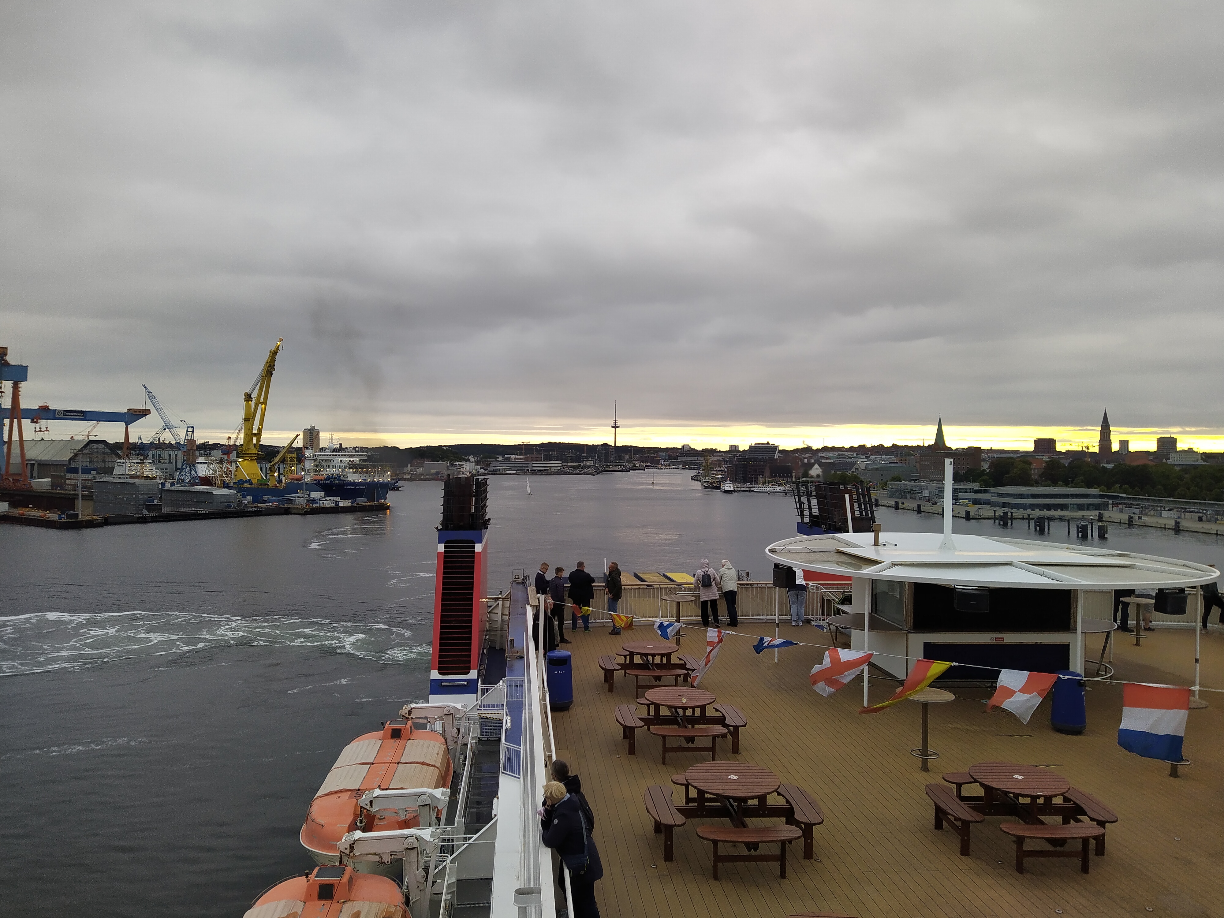 Freitag, 17.09.2021, 6.47: Wir sitzen, nachdem wir uns von Doro verabschiedet haben, im ersten von insgesamt drei (eigentlich vier, wenn man den zum Hauptbahnhof von Magdeburg mitzählt) Zügen, die uns nach Kiel bringen sollen. Wie soll es anders sein – die Deutsche Bahn hat Verspätung. Zum Glück werden aus anfänglich 20 Minuten doch nur 5, sodass unser Aufenthalt in Hamburg nicht erheblich länger wird. In Kiel angekommen, versuchen wir erstmal unsere Rucksäcke loszuwerden, was besser funktioniert als gedacht – Danke, DB ;).