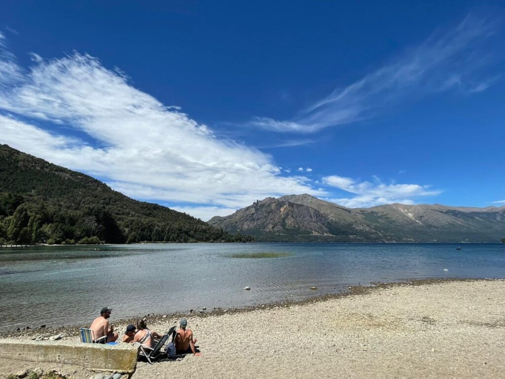 „Ich gehe ins Wasser und spüre die spitzen Steine unter meinen Füßen. Jedes Mal eine ganz schöne Wackelpartie die 100m in und wieder aus dem See zu laufen. Das Wasser ist wärmer als ich erwartet habe aber an diesen heißen Tagen definitiv eine Erfrischung. Die Sonne steht schon recht tief am Himmel, es ist früher Abend – es wird aber sicherlich noch eins zwei Stunden dauern bis sie ganz weg ist. Sie taucht die sowieso schon wunderschöne Landschaft in goldgelbes Licht und wärmt sanft meinen Rücken. Trotzdessen oder vielleicht auch gerade deswegen sind noch einige Menschen am Strand und genießen die letzten Stunden des Tages. Neben Hundegebell und dem Kreischen der Vögel, das man Tag und Nacht hier hören kann, höre ich Kinder und Erwachsene reden und lachen. Ein ganz normaler Nachmittag am See halt. Die Berge sind in sanftes goldenes Licht getaucht und wieder einmal denke ich, wie wunderschön ein Ort eigentlich sein kann. Der See „Lago Guiterrez“ ist umgeben vom Gebirge. Goldbraun thronen die Berge ringsherum. Besonders markant sind die Spitzen im hinteren Teil des Sees. Schwierig zu beschreiben, aber sehr markant stechen die drei, wie einzelne Türme heraus.