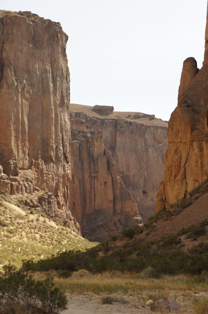 Anna und Jorge, die Inhaber des Campingplatzes, sind aber total lieb und mega begeistert ihre ersten Deutschen begrüßen zu dürfen. Sie haben ihren Campingplatz am Anfang der Saison also vor ca. zwei Monaten eröffnet und zeigen uns begeistert, wie Jorge sämtliche Gebäude selbstgebaut hat und momentan dabei ist kleine Hütten zum Vermieten zu bauen. Sie laden uns zu Mate und Tortas Fritas ein und wir haben tolle Gespräche. Zu unserem Glück füllt sich der Campingplatz dann aber doch noch – eine deutsche Familie und ein Pärchen aus Cordoba mit Hund haben auch ihren Weg hierher gefunden. Was wir vor unserer Anreise nach Gualjaina nicht wussten: dieser Ort ist verdammt klein, hat an sich nicht wirklich was zu bieten und der Piedra Parada ist 60 Kilometer entfernt und damit ohne Auto nicht zu erreichen. Außerdem scheint fast keiner dahinfahren zu wollen. Wir haben also schon fast aufgegeben, als uns die Idee kommt, das Pärchen aus Cordoba zu fragen, ob sie uns am nächsten Tag mit zum Piedra Parada nehmen können – und tatsächlich, sie nehmen uns mit. Es geht also noch weiter ins Nirgendwo, wo mitten in der argentinischen Steppe ein Fels frei rumsteht. Definitiv total interessant zu sehen. Viel schöner finde ich ist aber die Geierschlucht in der Nähe. Die Felsen dort sind atemberaubend hoch und die karge Landschaft einfach irgendwie schön. Ein tolles Klettergebiet, zudem wir an irgendeinem Punkt in unserem Leben nochmal zurückkehren müssen und das nicht nur, weil wir Anna und Jorge versprochen haben ihrem Campingplatz noch einmal einen Besuch abzustatten ;). Wir sind auf jeden Fall total dankbar, dort gewesen sein zu können. Nach einem sowieso schon tollen Tag, sind wir diesmal tatsächlich die Einzigen auf dem Campingplatz. Jorge macht uns leckeres Fleisch von seinen Schafen und zum Nachtisch gibt es selbstgemachten Sauerkirschlikör, den wir trinken während wir mit seiner Enkelin ein neu erlerntes Spiel spielen. Es ist mal wieder unglaublich, wie lieb die Menschen sind und wie toll es ist, wenn man die Landessprache einigermaßen beherrscht. Was ich auch von den beiden mitnehme ist, mit wie wenig man total glücklich sein kann. Sie haben eine einfache Küche ohne fließend Wasser und teilen sich das Bad mit ihren Campinggästen. Dafür leben sie aber mitten in der Natur und sind total aufgeschlossene und liebe Menschen.